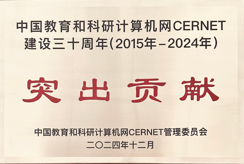 2024年荣获CERNET建设三十周年突出贡献奖,是对我校在CERNET建设中辛勤付出和卓越贡献的肯定。