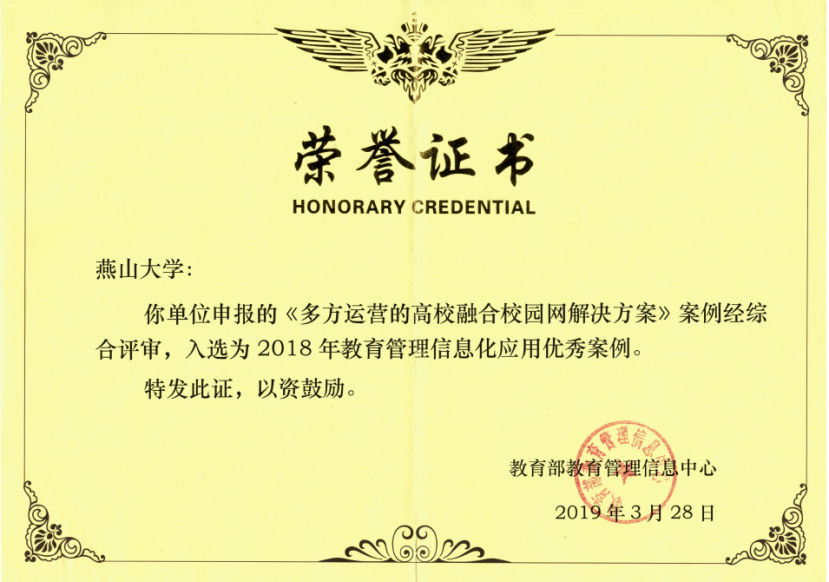 2016年在校园网资源环境的基础上与宽带运营商开展校园宽带通信融合接入,该案例入选2018年教育管理信息化应用优秀案例。