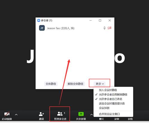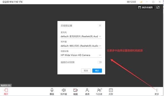 在更多中,可设置参会者的视频和音频源;