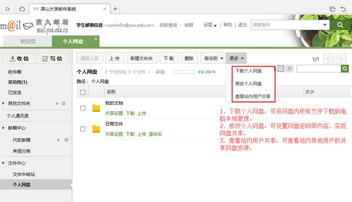 为了协助邮箱用户更好的利用邮箱空间,提高邮件存储的使用效能,现对文件中转站和个人网盘的日常使用做简要说明。