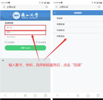 无线网络与有线网络认证方式相同,使用统一身份认证账号(工号/学号)和密码,选择“校园网”服务,点击“连接Login”按钮,进入认证主界面,即可正常使用无线网络。
