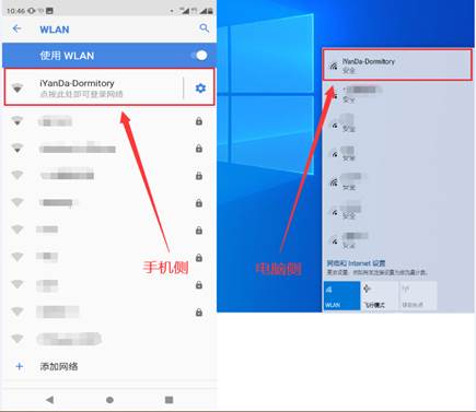 二、六公寓无线网络名称(SSID)为“iYanDa-Domitory”,打开终端设备(手机、笔记本、pad等智能终端)的无线网络连接,找到无线网络“iYanDa-Domitory”,点击连接即可接入校园无线网络。