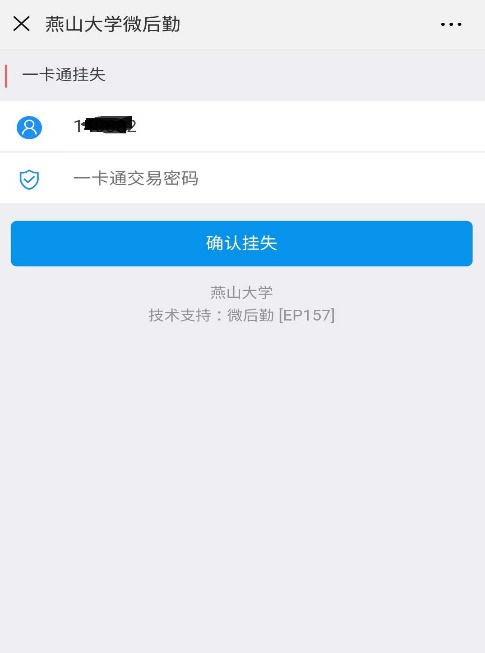 操作步骤:点击“校园卡挂失”--- 输入本人证件号(学号或工号),点击“确定” --- 输入校园卡密码,点击“确定”,系统会提示“挂失成功”。