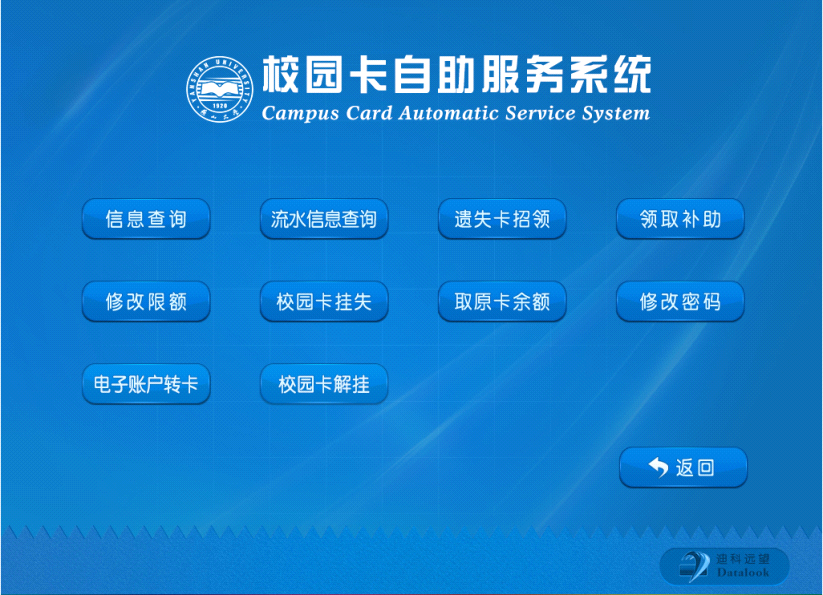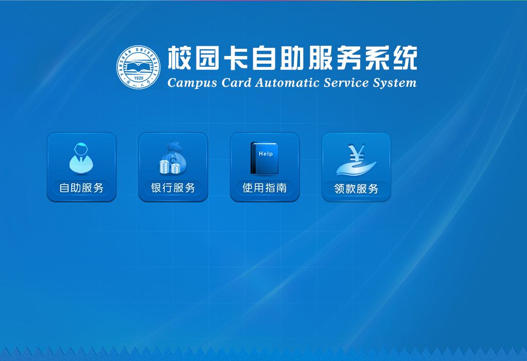 持卡人可在自助服务终端上完成一卡通业务包括:修改密码、挂失、解挂、查询余额和消费流水,银行卡绑定及充值等。