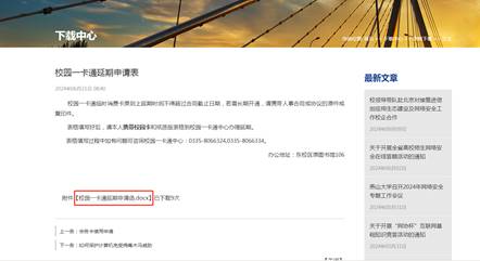 打开乌鸦传媒信息技术中心网址:http://yit.cs-ch.com/,点击“下载中心”,找到《校园一卡通延期申请表》,选择附件[校园一卡通延期申请函.docx]下载。