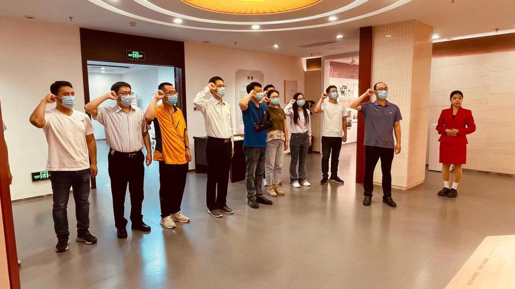 在红色讲解员的带领下,全体成员先后参观了“红色历程厅”、“精神谱画厅”、“风纪镜鉴厅”、“英模礼赞厅”,并在“党员宣誓厅”开展重温入党誓词活动。在红色历程厅,通过重温中国共产党的百年历史,感悟党的初心使命,不断汲取前进的智慧和力量。在精神谱画厅,通过了解中国共产党百年奋斗伟大精神,进一步坚定成员的理想信念,筑牢精神支柱。在风纪镜鉴厅,通过学习全面从严治党精神,进一步加强成员“打铁还需自身硬”的自我革命精神。在英模礼赞厅,通过学习英雄模范的光荣事迹,让英雄精神、榜样的力量激励我们不断前行。最后在党员宣誓厅,由党支部书记杨永涛带领全体党员重温入党誓词,牢记入党宣誓的信念和决心,激发党员的党性意识,坚定党员的理想信念。