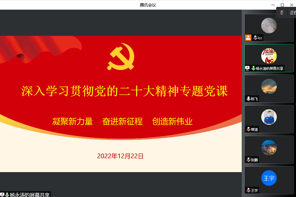 为深入学习宣传贯彻党的二十大精神,信息技术中心党支部于12月22日通过线上会议形式开展学习贯彻党的二十大精神专题党课活动,信息技术中心全体成员参加。