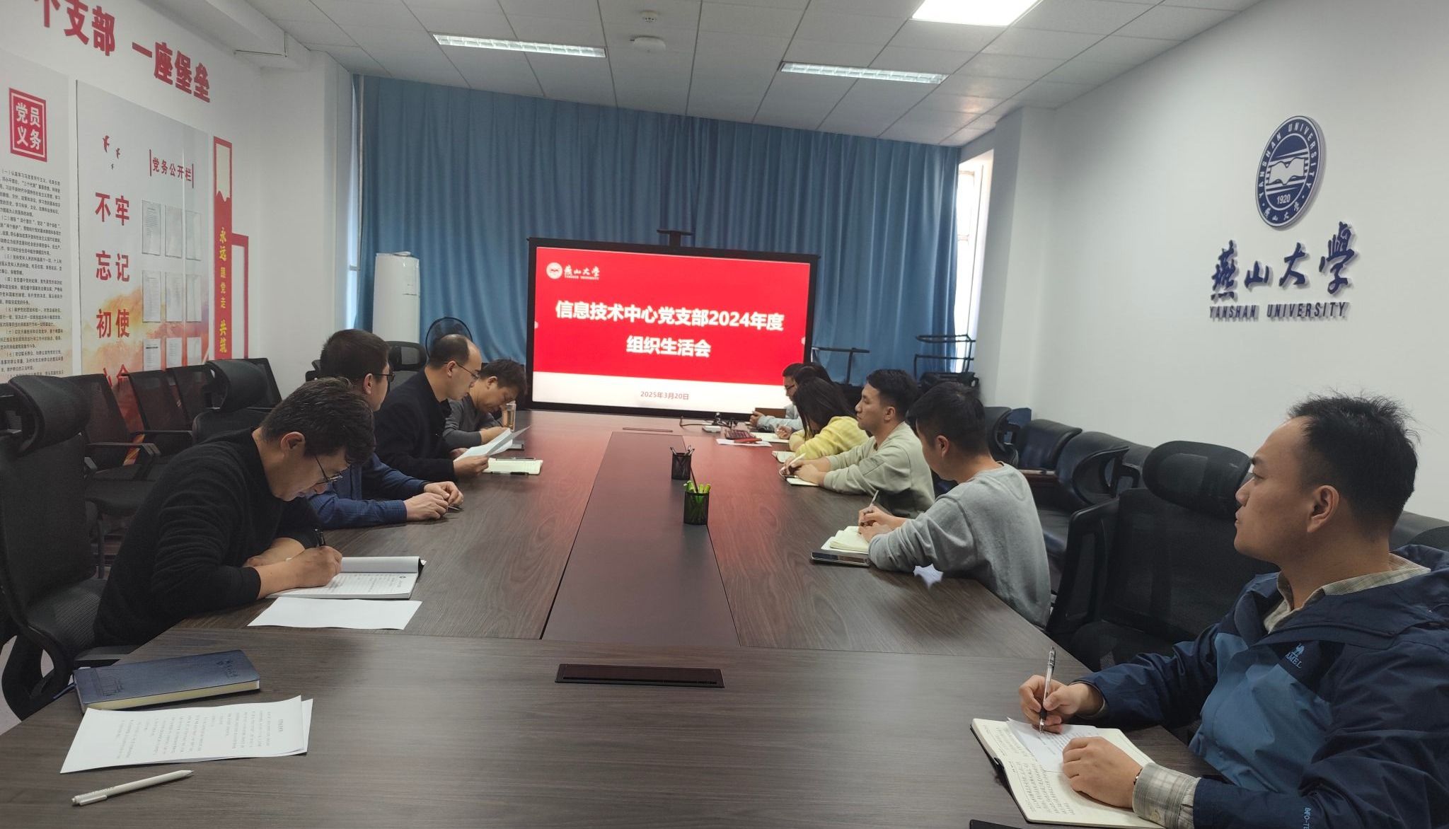 按照学校党委和机关党委的安排部署,信息技术中心党支部于2025年3月20日召开2024年度组织生活会并开展民主评议党员,会议由党支部书记杨永涛主持,信息技术中心全体党员参加会议。